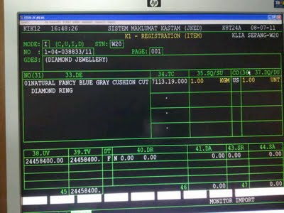 Ada musykil sikit pasai screen tu, biasanya kat atas ada nama username dan no. ic org yg sdg online kat Sistem Maklumat Kastam tu.